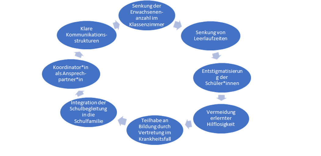 - Es ist nicht mehr pauschal ein Erwachsener pro Kind verantwortlich; die Schul- und Individualbegleiter:innen werden übergreifend nach Bedarf eingesetzt.