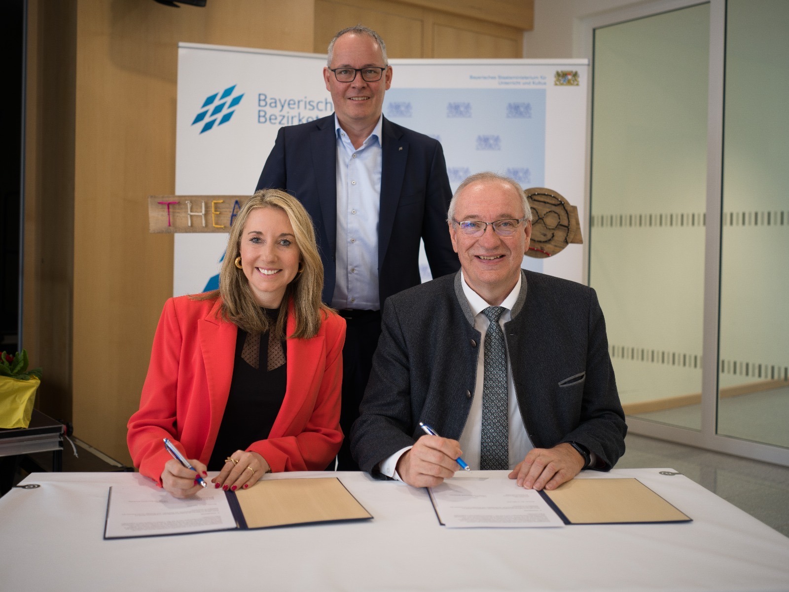 Rückenwind bekommt die Neuorganisation der Schulbegleitung über das Pooling durch die gemeinsamen Empfehlungen des Bayerischen Bezirketags und des Bayerischen Staatsministeriums für Unterricht und Kultus zum Pooling von Schulbegleitung nach dem SGB IX an Förderschulen. Diese wurden am 13. März 2025 von der Kultusministerin Anna Stolz und dem Präsidenten des Bayerischen Bezirketages Franz Löffler an der Thea Diem Schule in Unterhaching (Förderzentrum für geistige Entwicklung) unterzeichnet. Ziel der Empfehlungen ist es, die Pool-Bildung in Bayern flächendeckend umzusetzen. Wir waren als Lebenshilfe München vor Ort!